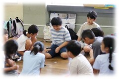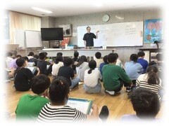 甘酒を試飲 ~町田醤油味噌醸造場の方から~ 10月6日(月)の総合的な学習の時間に、町田醤油味噌醸造場の町田靖典さんから上越市には味噌屋が6社、醤油屋が2社あることや甘酒を飲むと身体が温まり元気になることを教えていただきました。 その後、町田醤油味噌醸造場が販売している甘酒「晴れたらイイな!」を試飲させてもらいました。初めて飲んだ子どもたちからも「飲みやすい」「思っていたよりも甘い」といった感想が多かったです。最後に町田さんから「甘酒が飲みやすくなるアレンジレシピを考えてほしい」「晴れたらイイな!のギフト箱のデザインを考えてほしい」と言われた子どもたち。「アレンジレシピをもっと考えたい!」「イラストデザインを描きたい!」という気持ちが高まっていました。