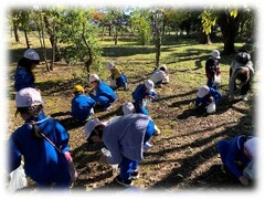 校外学習に行ってきました。大町小学校では、まず、モルモットのくろろさんの紹介をしました。9グループに分かれて考えたくろろさんのことを、どの子も一生懸命に伝えることができました。その後ヤギの紹介を聞きました。行ってみて驚いたのは、ヤギが3頭ではなく、4頭いたこと。母ヤギに加えて子ヤギが3頭いました。なんと三つ子でした!1頭1頭の紹介や掃除の仕方、エサのあげ方など、モルモットさんとは違うことをどの子も興味津々に話を聞いていました。互いの動物の紹介が終わった後、エサやり体験をさせてもらいました。一人一人が紙コップに入れたエサをもらい、ヤギにエサをあげました。ドキドキしている子、恐る恐るあげている子、ヤギになめられてニコニコ顔になっている子…いろいろな表情を見ることができた時間でした。