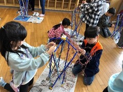 リースの形を作りました アサガオのつるを使って、リースの形を作りました。種を撒いてからおよそ半年にわたって世話をしてきたアサガオ。根元を切るときには「こんなに太く、堅くなったんだね」、「今までたくさん咲いてくれてありがとう」などアサガオさんと会話をしながら切っていました。 その後が大変。支柱に絡まったつるをほどくのに、苦戦しましたが、とても上手に形を作ることができました。これから秋の実を飾り付けて世界に一つのリースを作ります。