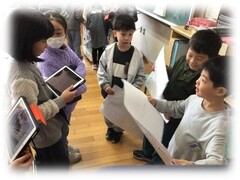 くろろさんとのふれあい会 今週と来週は、2~6年生の子どもたちに、モルモットのくろろさんと仲良くなってもらう「くろろさんとのふれあい会」を行っています。これまでも休み時間に見に来たり、なでに来たりする人がいましたが、全校のみんなにも見てほしい!かわいいを伝えたい!!ということで企画をしました。当日は、並ばせて案内をするチーム、クイズチーム、なでなでチーム、お土産チームに分かれて、各学年のみんなにくろろさんの魅力を伝えていました。来てくれた子どもたちからは、「かわいい」「あったかい」「自分たちが飼っていた動物とは違う」「お土産の写真がすごい!」という声が聞かれました。来週は5,6年生を対象にふれあい会をします。
