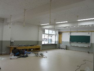 旧校舎の2階の最も西側は、プレハブ校舎につながる廊下として、またスマイル教室として使用してきました。今年に入り、元の図工室に戻す改修を行っています。こちらの工事も終了し、検査を経て22日には使用開始できる予定です。