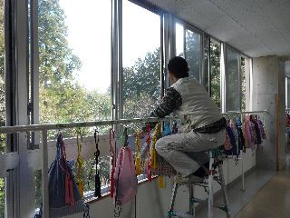観音池と林に面した新校舎の東側(ドリームパーク側)には、教室への害虫の進入を防ぐための網戸が必要でした。3月12日(土)に取付作業を行っていただきました。ありがとうございました。