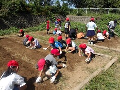 2学期に入ってから、子どもたちと畑の草取りを3回しました。すっかりきれいになりました。「ねいろ会議」で、どのような秋野菜を育てるかを話し合った結果、大根・かぶ・小松菜・白菜・レタスに決定しました。今回は、夏野菜と違い、種から育てることに挑戦します。また、初めて自分たちで畝作りをしました。「上を平らにするのが難しいな」とつぶやきながらも一生懸命に取り組みました。