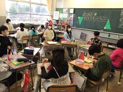 よつばクリスマスパーティー大成功!!よつば学年が企画運営をしたかがやき班イベント「よつばクリスマスパーティー」が行われました。この日のためにポスター作りだけでなく、クリスマスツリーの飾りやぼうしづくりの輪の準備をしたり、当日の司会進行の言葉を練習したりしてきました。当日は、それぞれのかがやき班で会を進めたり、作り方を教えたり、同じかがやき班の人に、「上手!」「きれいだね!」などの褒め褒めシャワーの言葉掛けをしたりと大活躍でした。かがやき班の中で初めての司会をするということで、とても緊張したと思います。そのような中、同じ教室で活動している1年生同士で助け合ったり、上学年のお兄さんお姉さんたちにサポートしてもらったりしながら、自分の役割を果たすことができました。クリスマス会が終わって教室に戻ってきた子どもたちは、どの子もとてもよい表情。「喜んでもらえた!」「楽しかった!」と、達成感を感じることができたようでした。