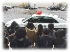 上越消防署と上越警察署の見学に行ってきました。私たちの暮らしの安全をどのように守っているのか、仕事の話を聞いたり車両や装備品などを見たりさせていただきました。普段見ることのできない場所や、教科書では分からなかった話に、子どもたちは目を輝かせながら見学をしていました。