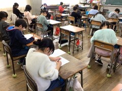 校内書き初め会をしました。当日の朝、「ドキドキする~!」「手が震えそう」と話していた子どもたちでしたが、いざ書き始めると、どの子も手本を何度も見返しながら、鉛筆の先に気持ちを込め、一画一画ていねいに書き上げていました。表情はとても真剣で、これまでの練習の成果がしっかり出ていました。書き終わった後は、「ほっとした」「思ったより上手にできた!」「緊張したけれど楽しかった!」という明るい声があちらこちらから聞こえ、達成感に満ちた様子でした。冬休みの頑張りと当日の集中力が合わさり、子どもたちにとってよい経験になりました。
