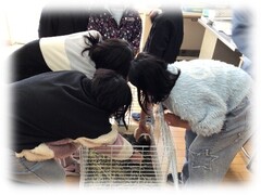 くろろさんとのふれあい会今週と来週は、2~6年生の子どもたちに、モルモットのくろろさんと仲良くなってもらう「くろろさんとのふれあい会」を行っています。これまでも休み時間に見に来たり、なでに来たりする人がいましたが、全校のみんなにも見てほしい!かわいいを伝えたい!!ということで企画をしました。当日は、並ばせて案内をするチーム、クイズチーム、なでなでチーム、お土産チームに分かれて、各学年のみんなにくろろさんの魅力を伝えていました。来てくれた子どもたちからは、「かわいい」「あったかい」「自分たちが飼っていた動物とは違う」「お土産の写真がすごい!」という声が聞かれました。来週は5,6年生を対象にふれあい会をします。